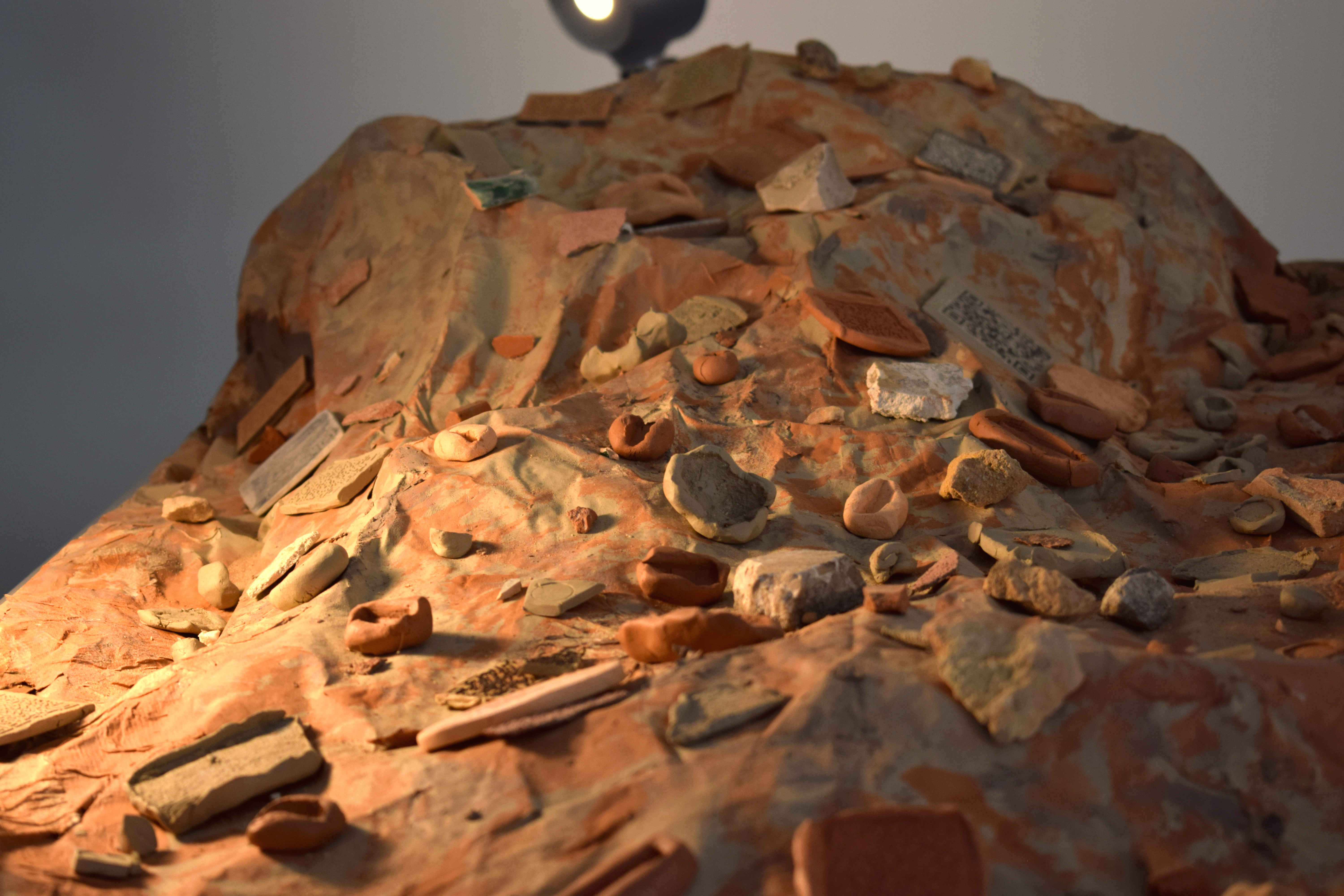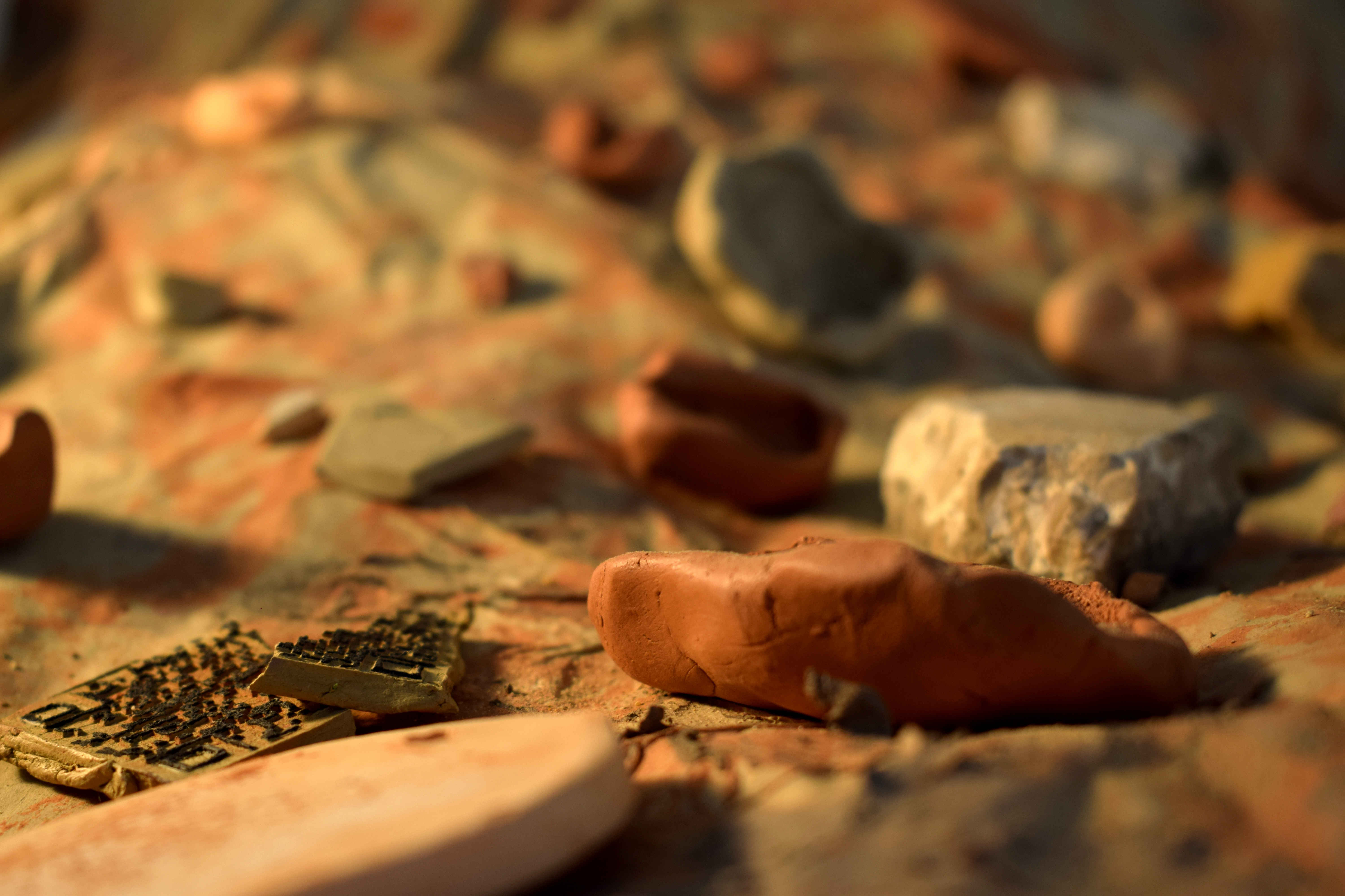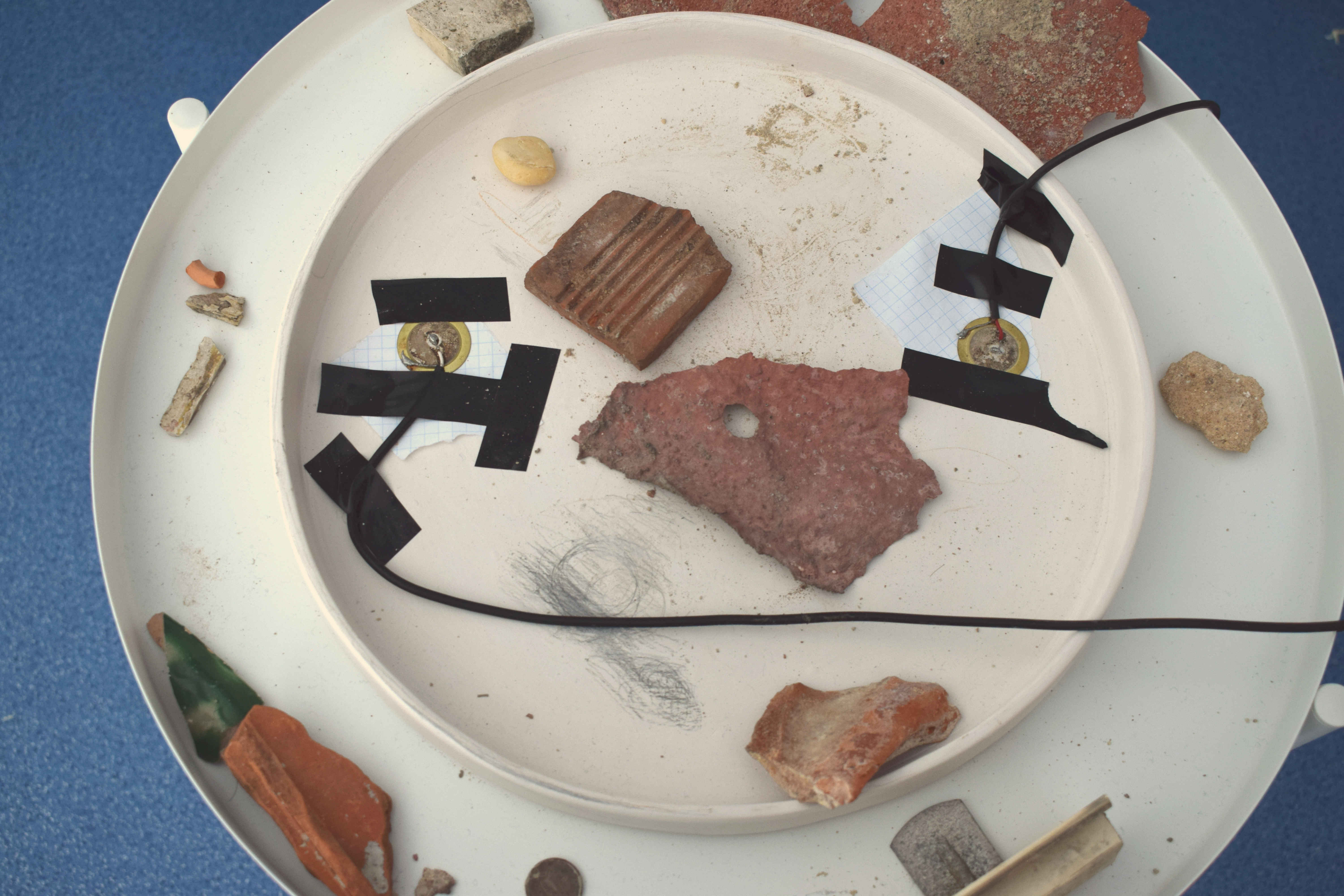 Thus, during 90 days, Collective Gabirú lived, discovered, collected and invented new meanings for Bairro do Rego. All the works that make up the exhibition started from the visual, sound and symbolic elements made available by the dynamics of this locality. And, like those who highlight the due merit of dialogue between digital and manual technologies, algorithms were used for image construction and lasers for QR code marking, but also ceramics, which with their symbolic charge, offer the slowness of time and memory. For something that cannot be seen, but is indisputably present in the neighborhood, the dynamics of sound also provided elements for the composition of the pieces on display. Finally, among the drifting walks, the idea of archaeology of absurdities was found, in which the group was involved in a kind of hunt for invisible treasures of everyday life. Therefore, it was through a slow gaze, through the "frestas" of meanings, that it became possible to imagine in stones, shards of ancient constructions and pieces of concrete from new structures the interweaving between past, present and, who knows, the future in Bairro do Rego.