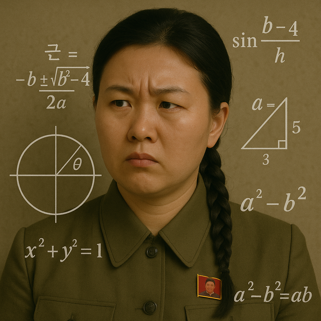 Using generative AI tools, each image was created through prompt engineering that combined emotional tone, regional identifiers, and symbolic imagery. For instance, a Brazilian woman mid-samba, a North Korean soldier, or a Portuguese woman in traditional attire—all presented with puzzled expressions and surrounded by algebraic symbols—serve to universalize the feeling of mental overload in culturally distinctive frames. The prompt construction process was highly iterative, ensuring each output balanced recognizability, stylistic fidelity, and expressive clarity.